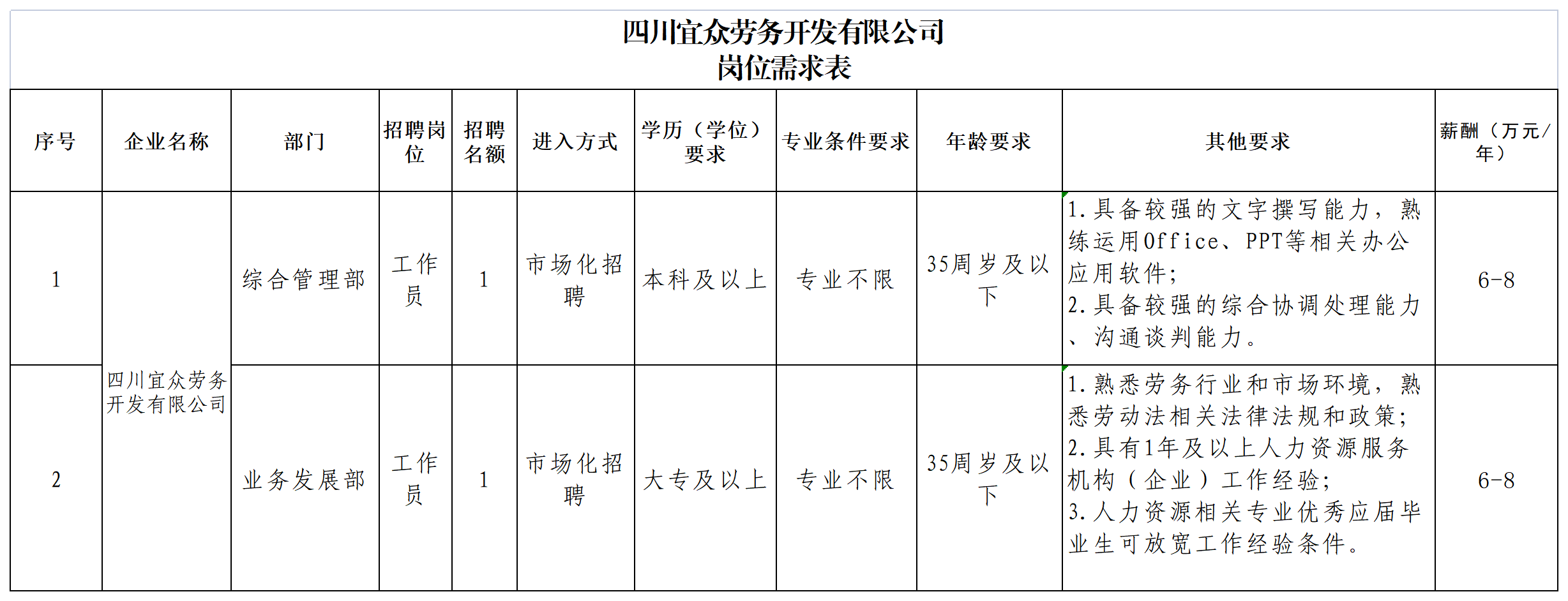 - 四川宜众劳务开发有限公司关于公开招聘2名工作人员的公告 2026-03-10