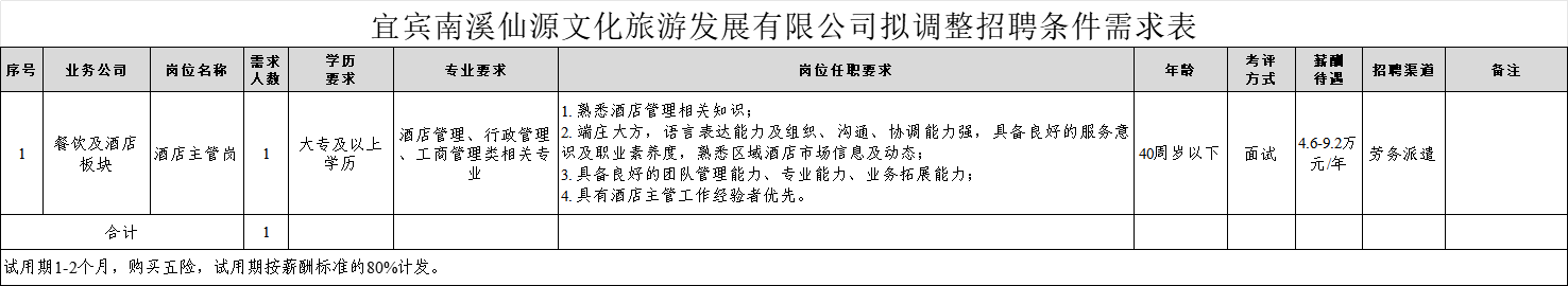 - 四川宜众劳务开发有限公司关于招1名宿管人员的公告 2026-02-27