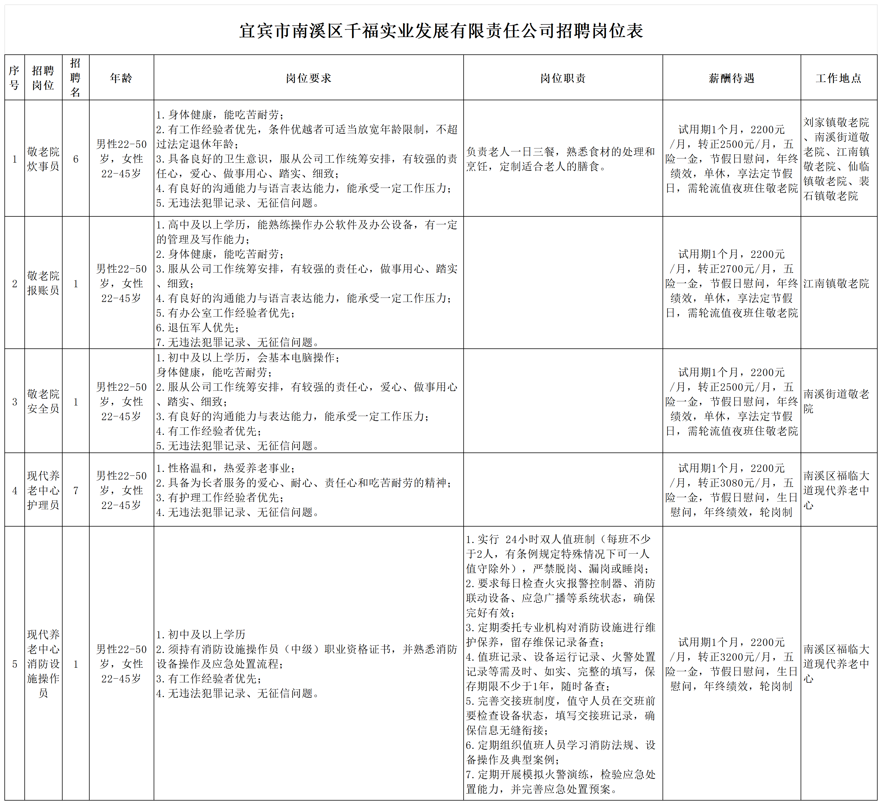 - 四川宜众劳务开发有限公司关于公开招聘2名敬老院炊事员的公告 2026-01-28
