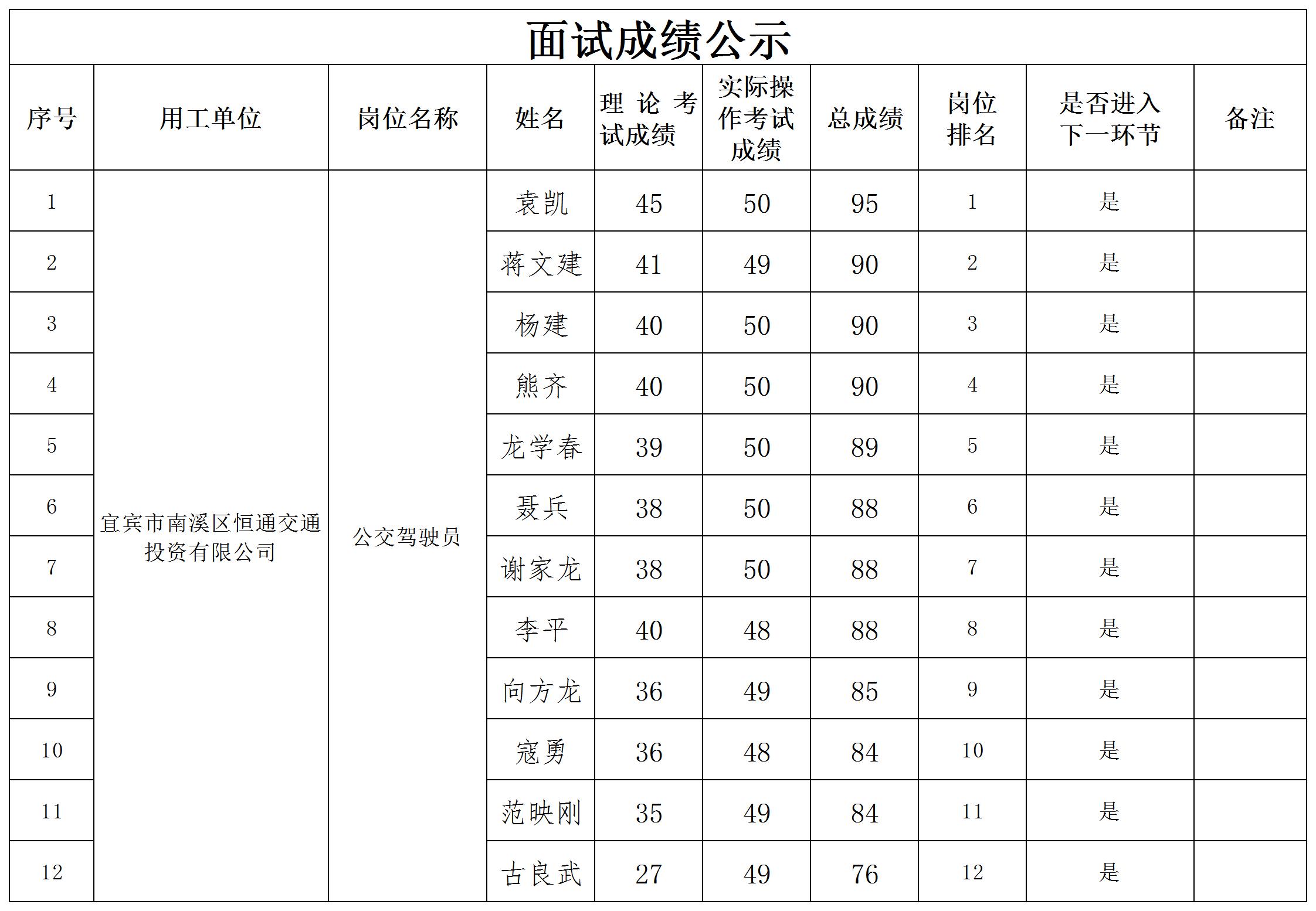 四川宜众劳务开发有限公司关于招聘驾驶员的成绩公示